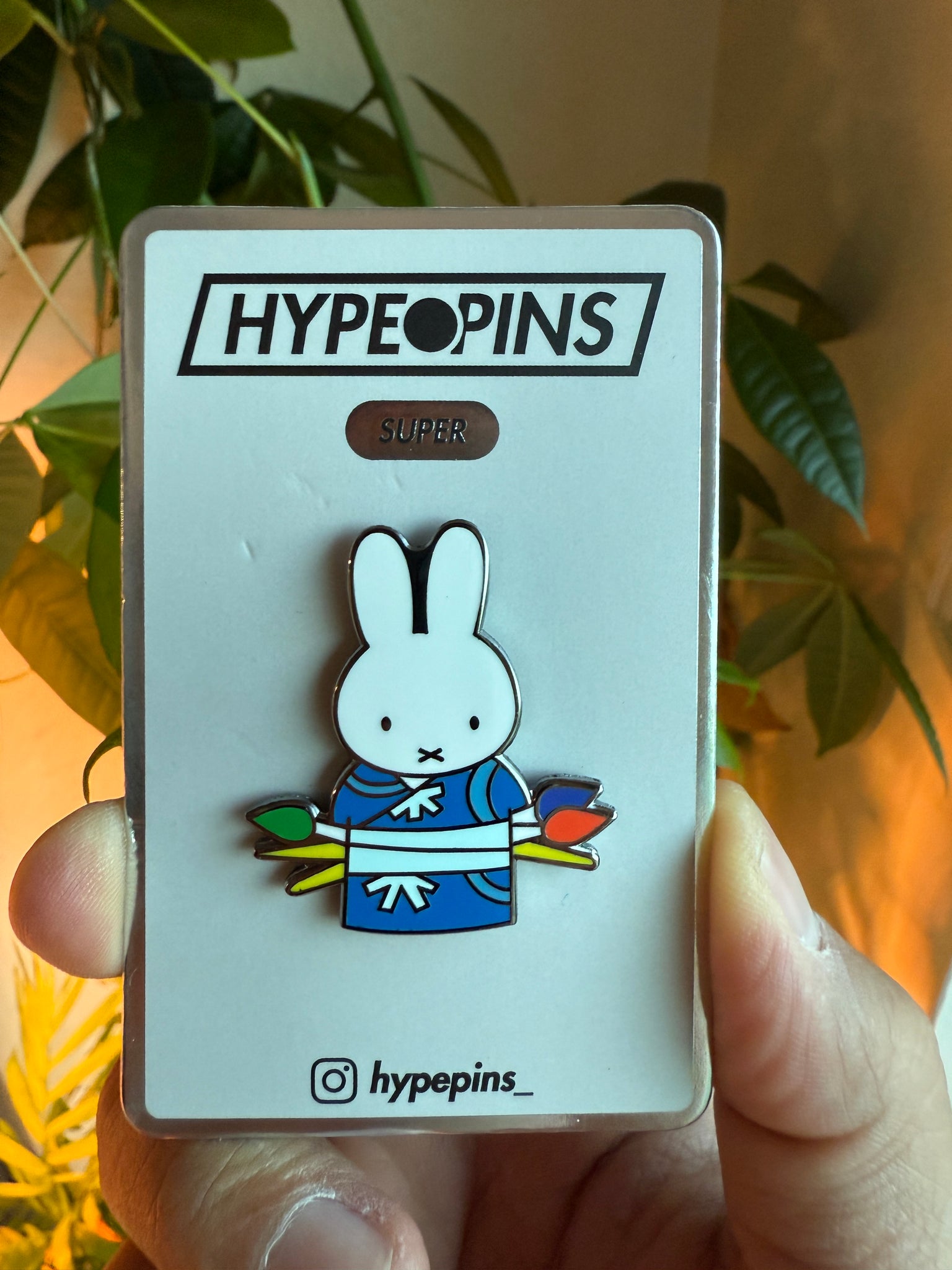 Celebrate creativity with this playful Rabbit Kimono Painting hard enamel pin. Featuring a charming rabbit dressed in a kimono and holding paint brushes, it’s perfect for art lovers who enjoy a touch of whimsy. Add it to your collection or wear it on your favorite accessory to showcase your artistic spirit with a fun, adorable flair.